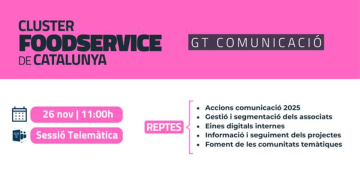 Una trobada pensada per aprofundir en el paper estratègic de la comunicació dins del sector foodservice i potenciar el coneixement compartit entre els membres del grup. La sessió permetrà explorar noves idees, analitzar casos concrets i identificar oportunitats per fer créixer l’impacte comunicatiu del clúster a través d’accions coordinades i narratives potents.